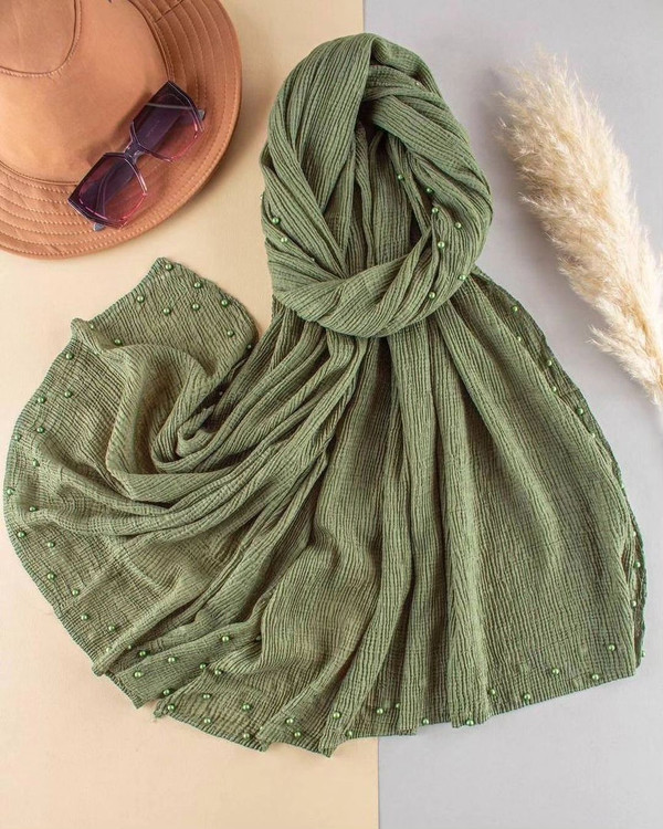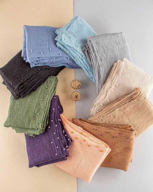 ☘️ شال پلیسه لبه مرواریدی وارداتی اورجینال