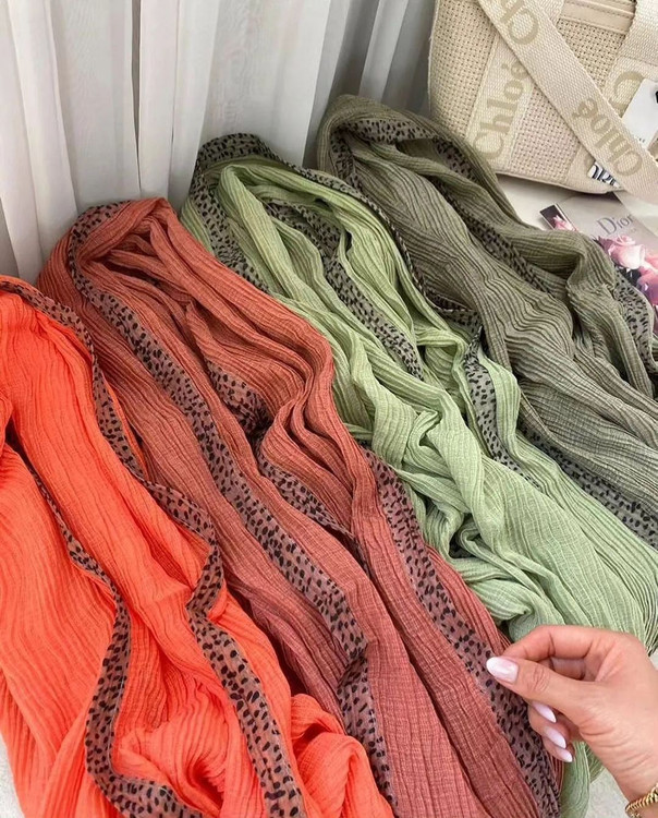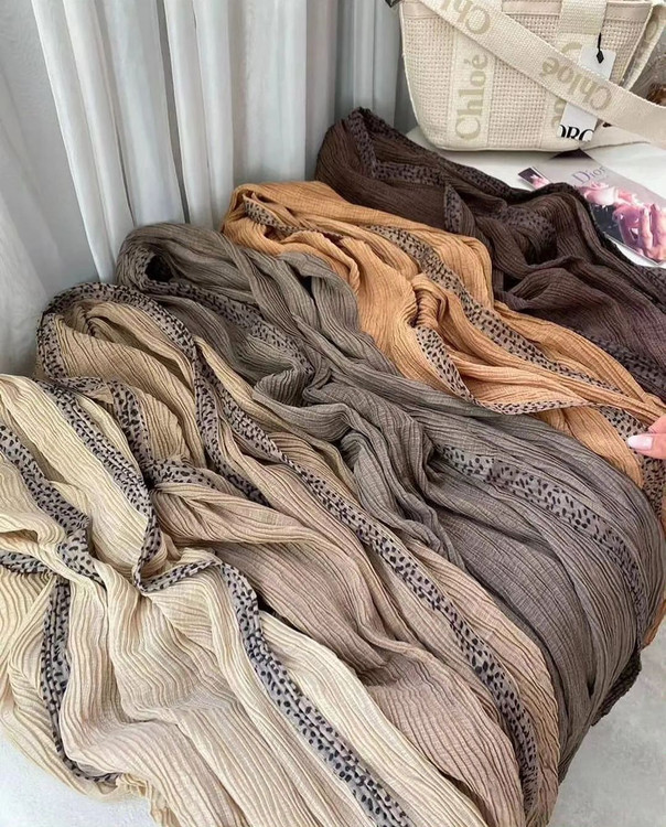 ☘️ شال پلیسه وارداتی حاشیه پلنگی اعلا