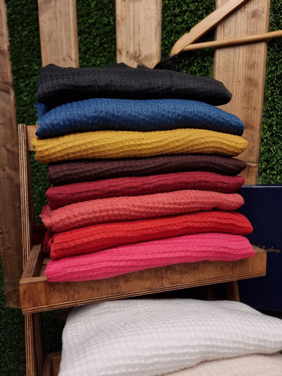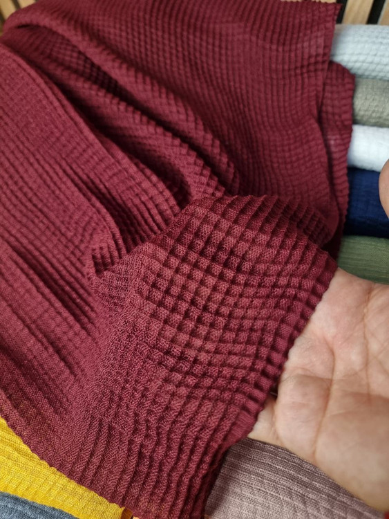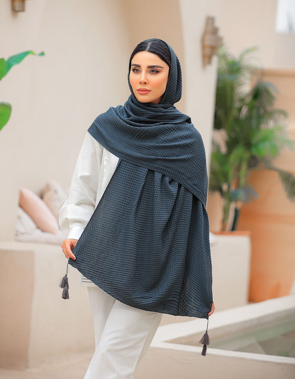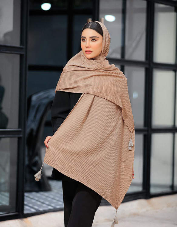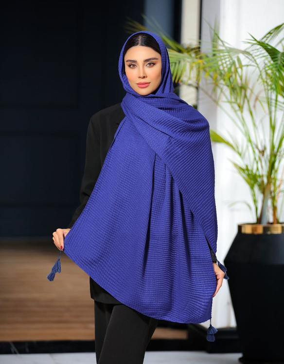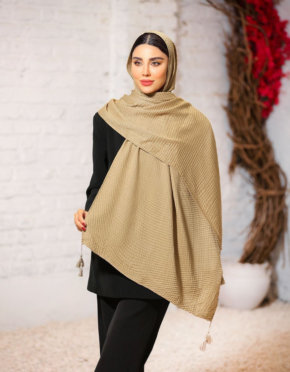 شال پلیسه نخی مربعی ریز منگوله دار بلند