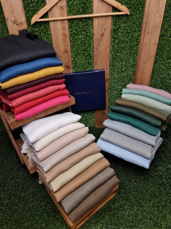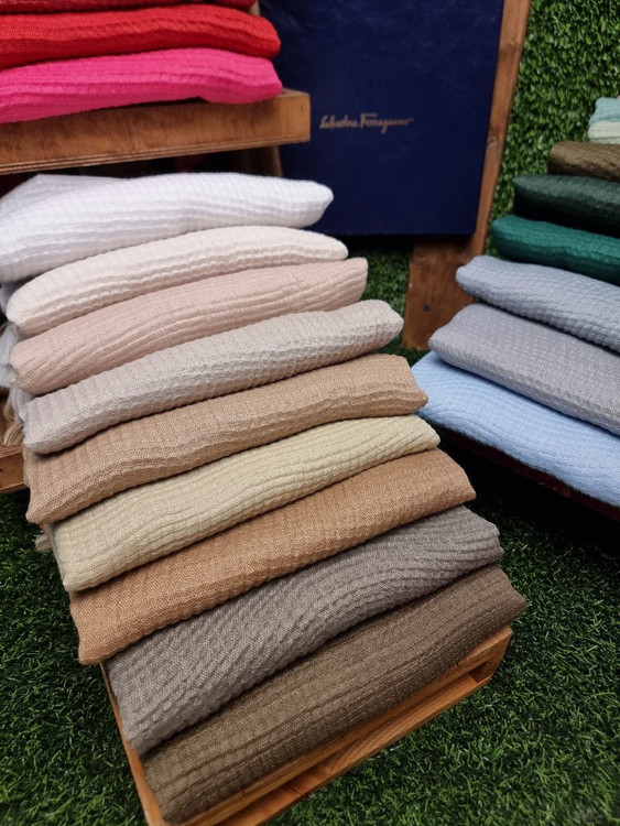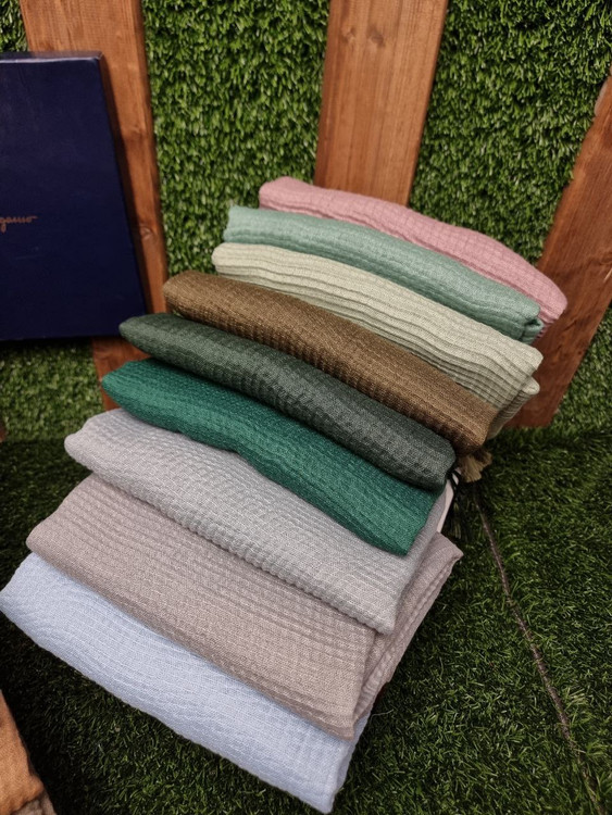 ☘️ شال پلیسه نخی مربعی ریز منگوله دار