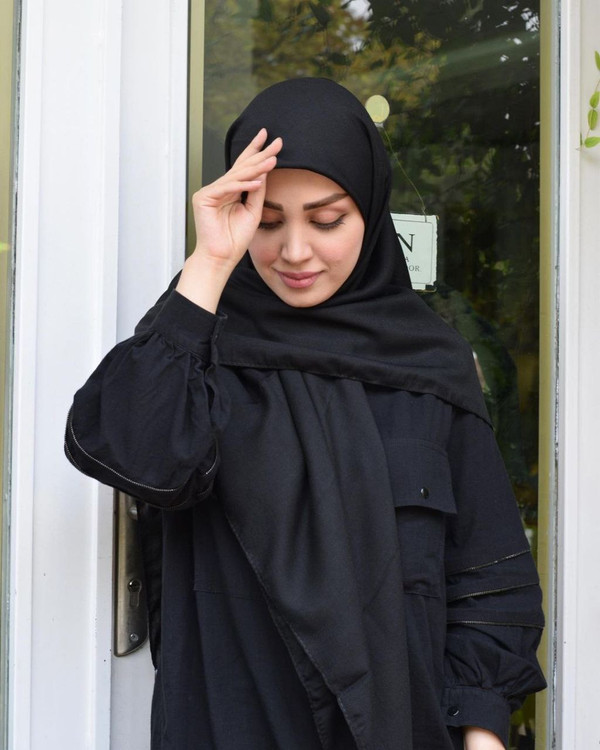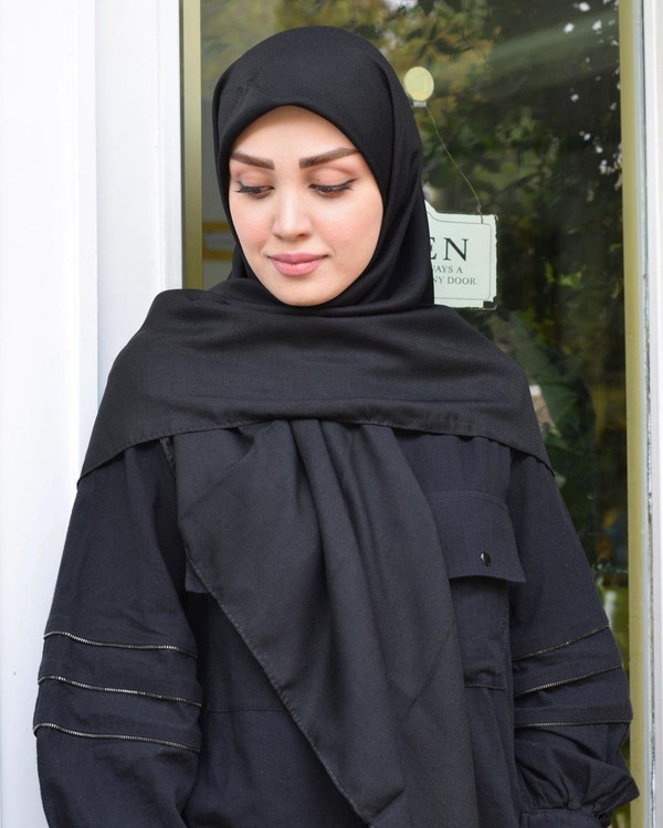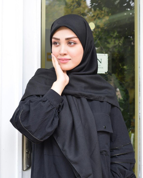 روسری نخی وال دست دوز ساده مشکی خنک