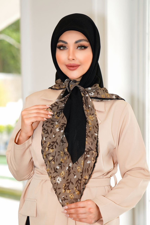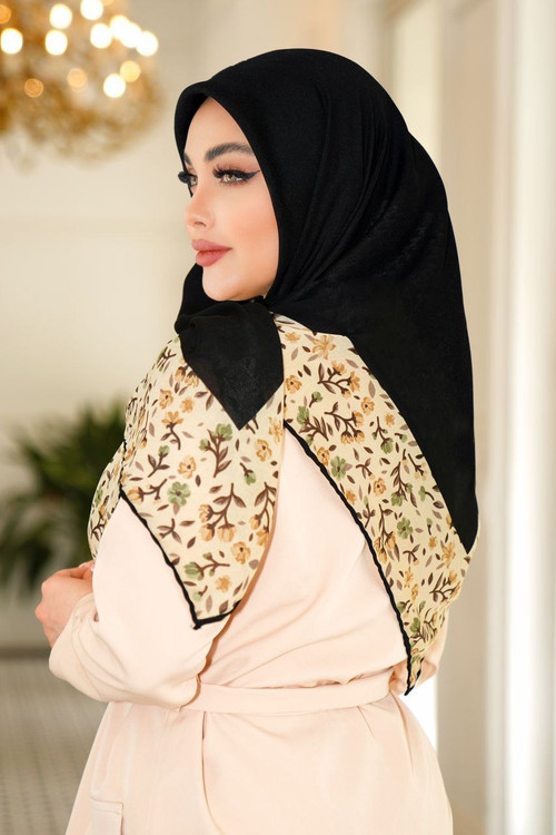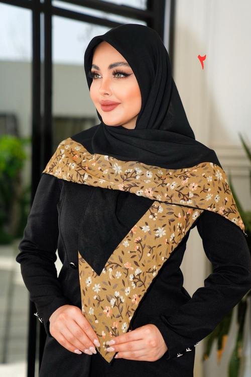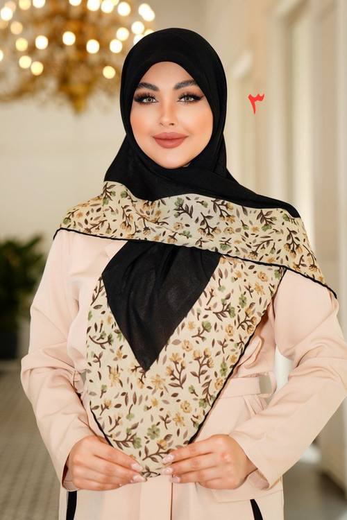☘️روسری حریر کرپ دست دوز حاشیه طرحدار