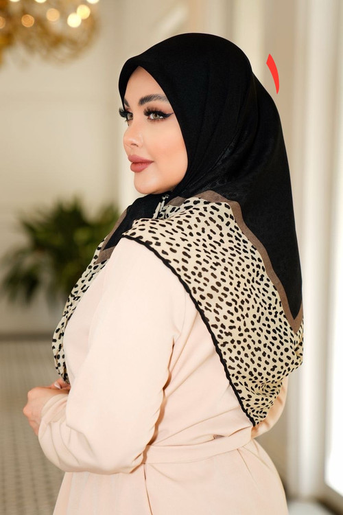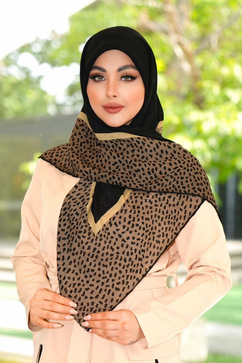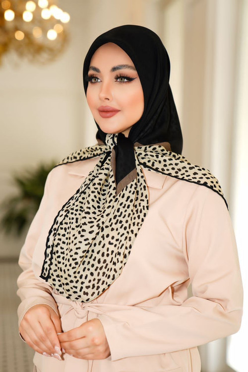 روسری حریر کرپ دست دوز حاشیه طرحدار