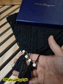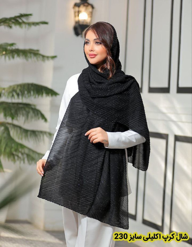 ☘️شال پلیسه کرپ مشکی اکلیلی منگوله دار