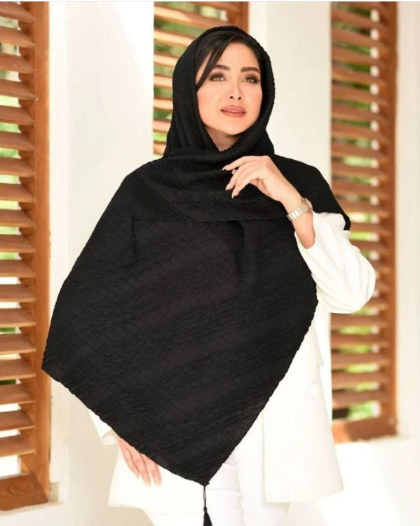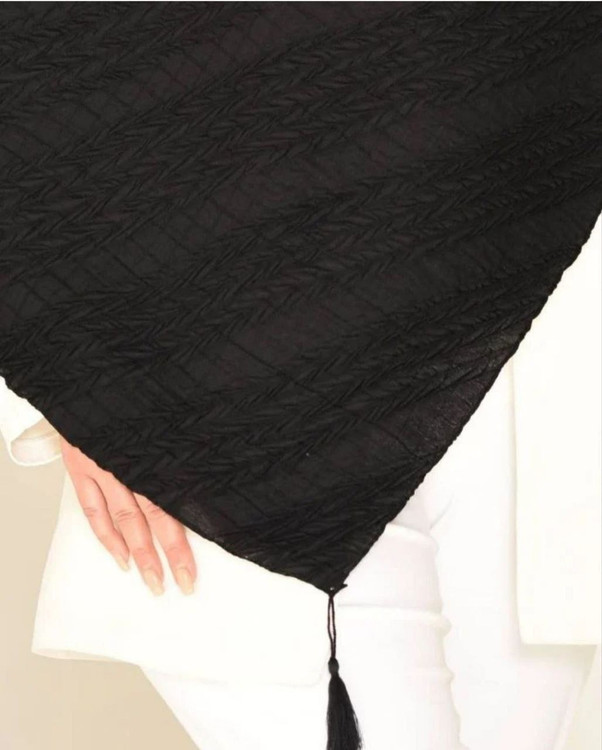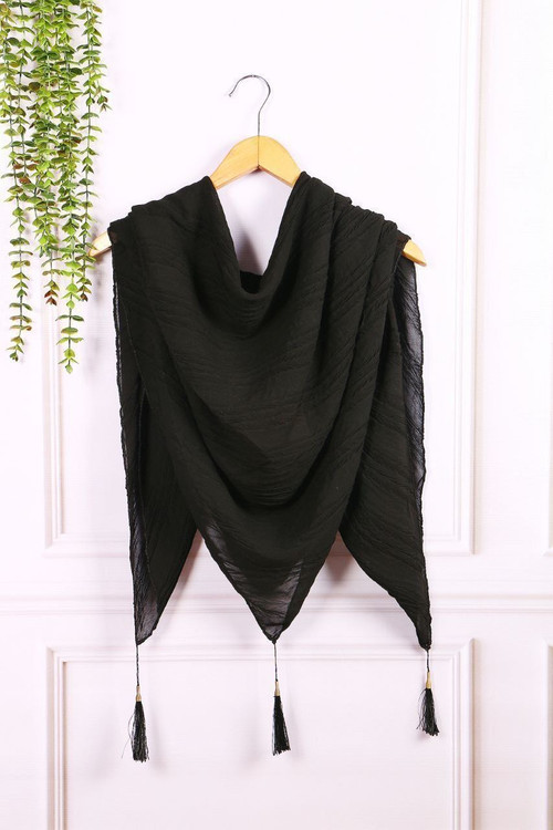 ☘️روسری پلیسه کرپ مشکی منگوله دار