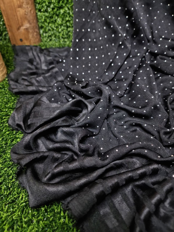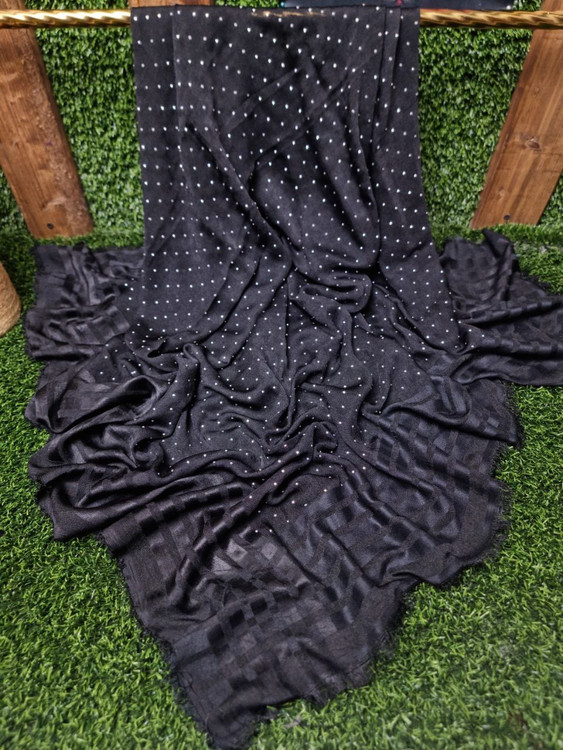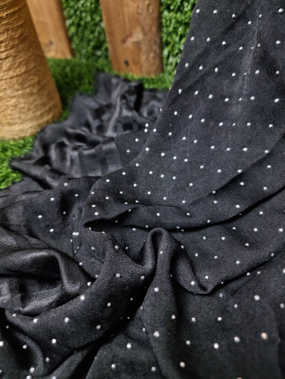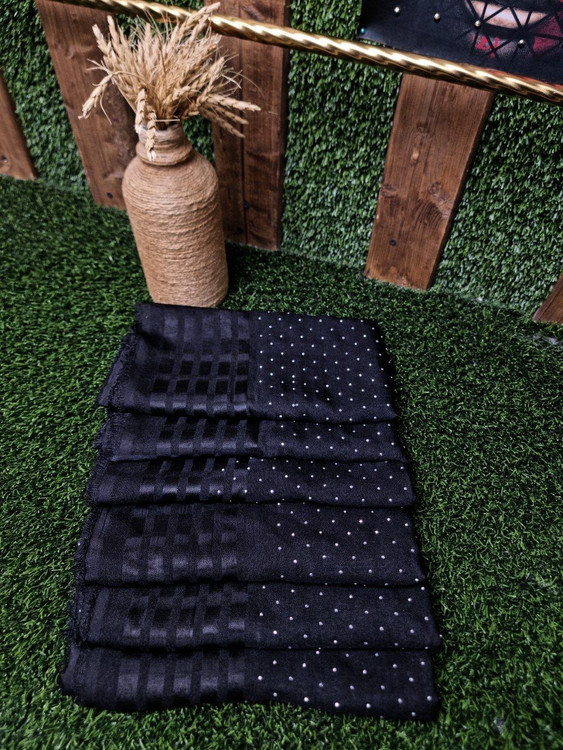 ☘️ روسری نخی گیاهی مشکی نگین دار