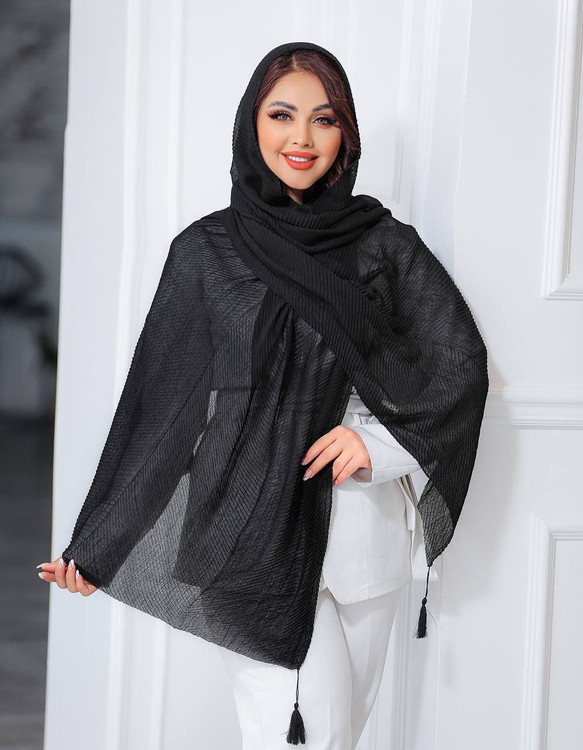 شال پلیسه سوپرنخ مشکی خنک و نرم