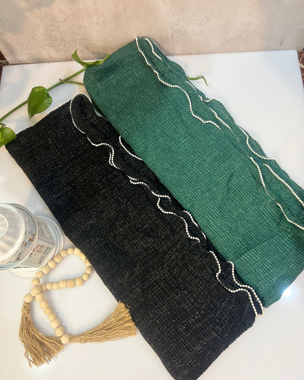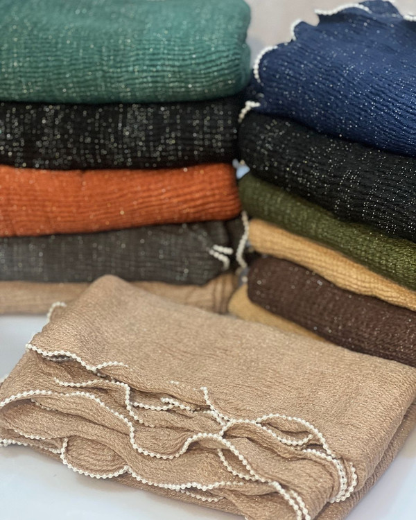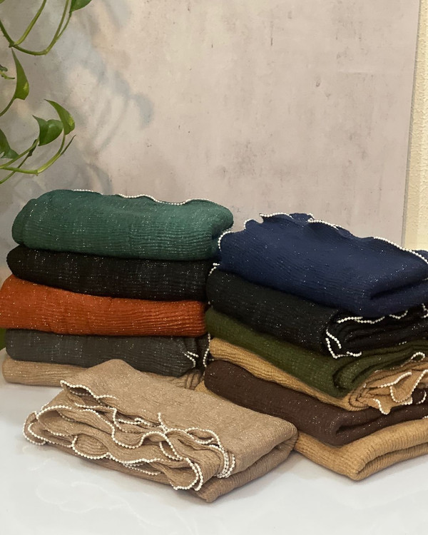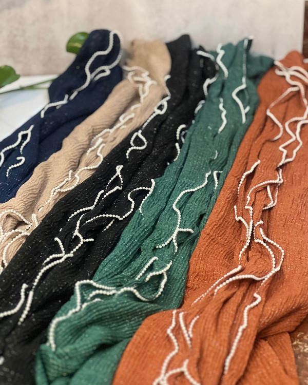 🍂 شال پلیسه لمه لبه مروارید پاییزه( ایستاییش عالیه و سرنیست)