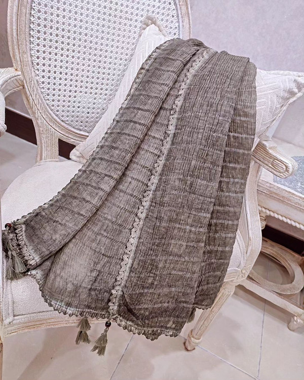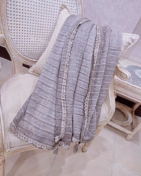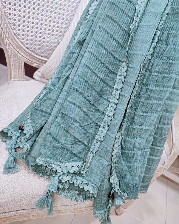 ☘️ شال پلیسه کرکرهای سنگشور لب دانتل وارداتی اورجینال