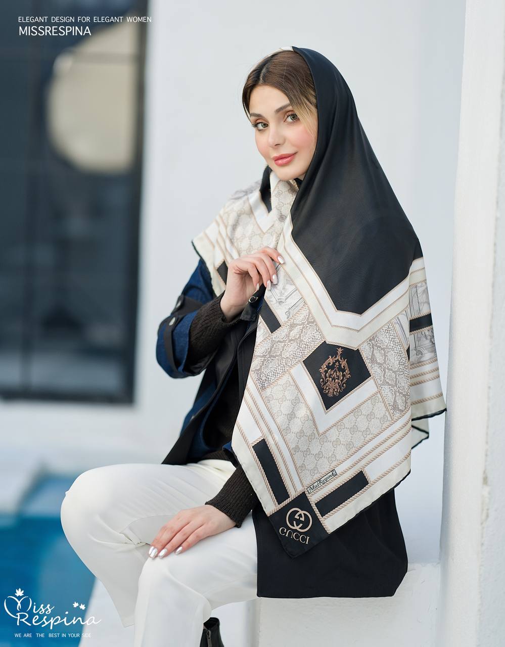 روسری ابریشم مامی و حریر کرپ دست دوز قواره ۱۰۰ با تنوع زیاد