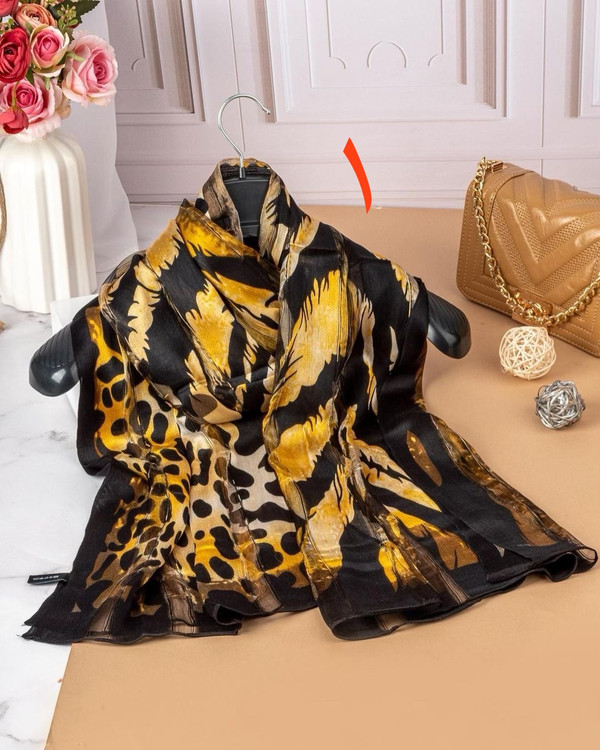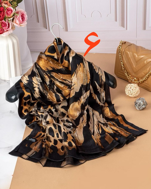 شال ابریشم میله ای پلنگی وارداتی