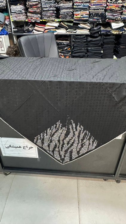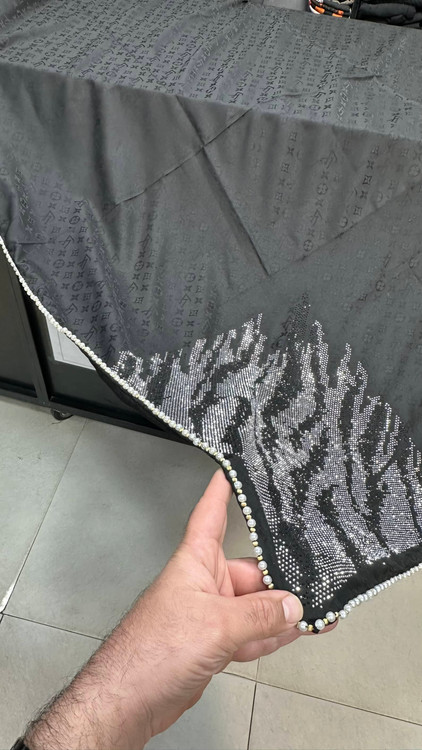 روسری ژاکارد اعلا دور مروارید یکگوشه نگین پرکار