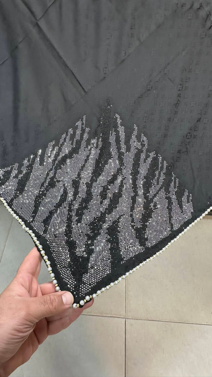 ☘️ روسری ژاکارد مشکی دور مروارید و یک گوشه نگین پرکار